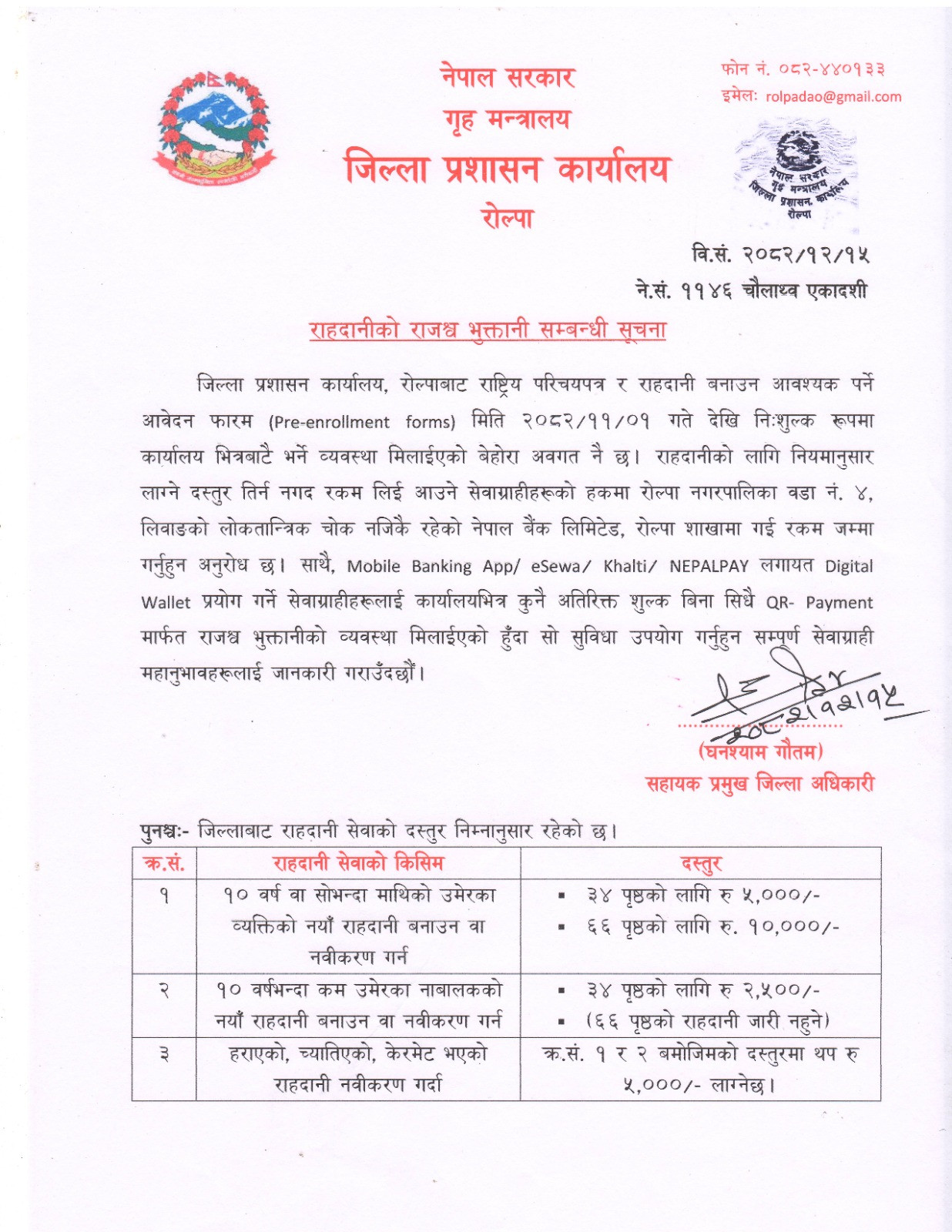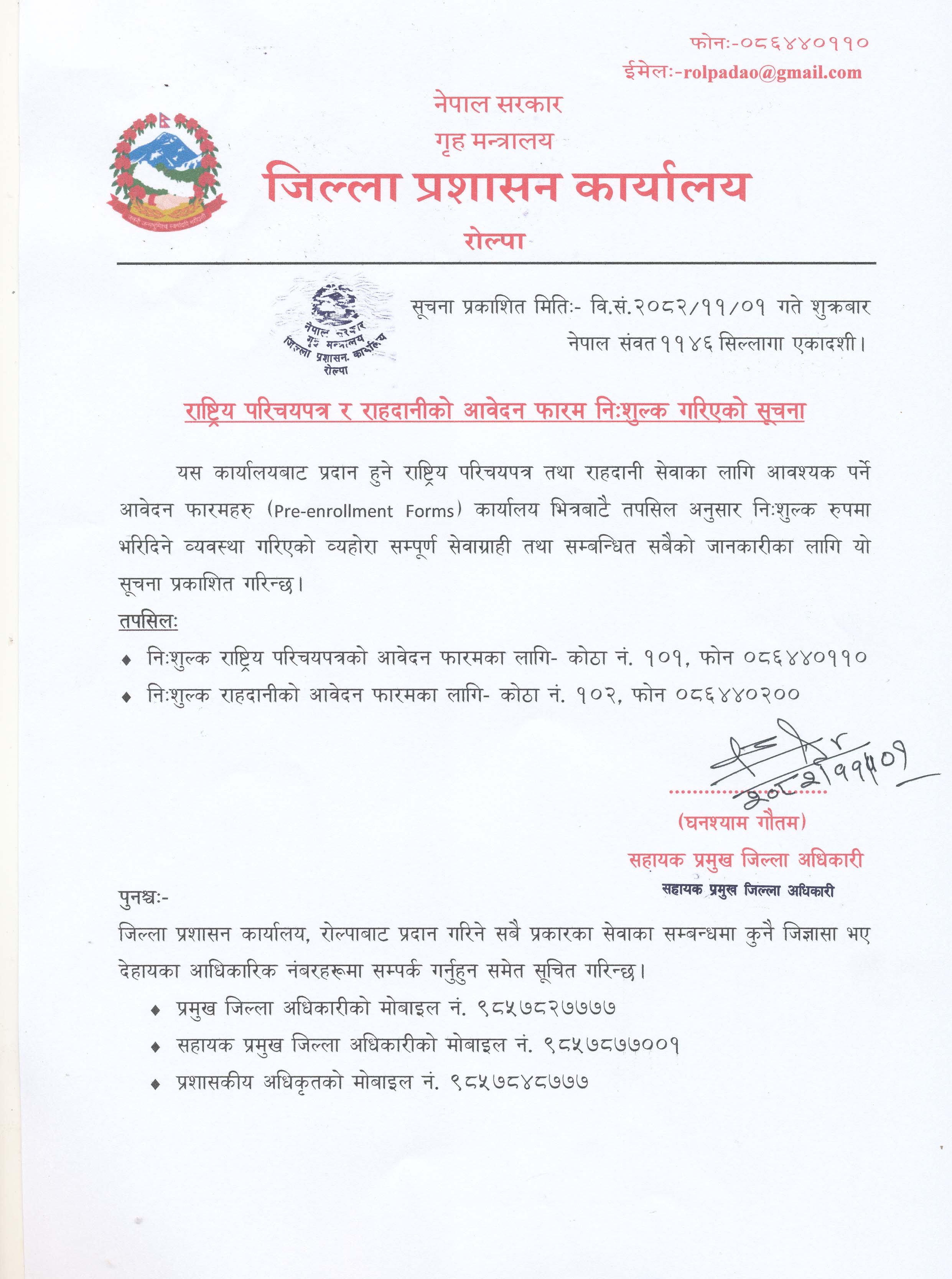 © सर्वाधिकार सुरक्षित जिल्ला प्रशासन कार्यालय, रोल्पा .